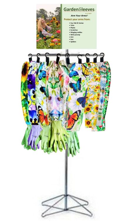 Customers go gaga over our fashionable and functional GardenSleeves! Our MULTI42 display comes with 36 pairs classic, 6 pairs sport, a free display stand and header! Email us at lynne@nompigloves.com for display price, a complete wholesale price list and order form for open stock. We would love to work with you!